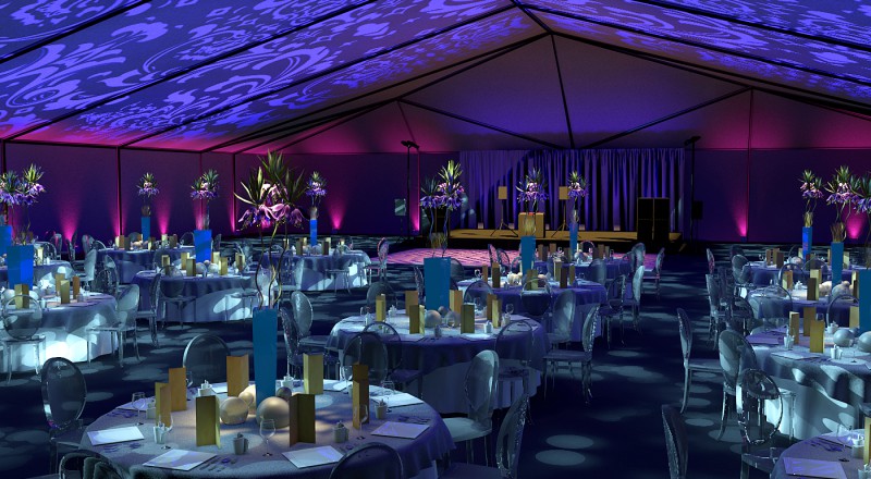 Damask Tent This 100’x80′ tent has a damask gobo…